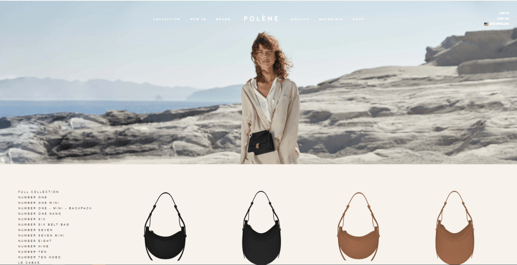 Polène probably has one of my favorite website of any of the brands that I’ve reviewed so far. I would compare it to the color scheme of Hermès with a slightly increased font size of YSL. They website was very easy to navigate. Its clear. You have a bag type and then a picture of all the colors they come in. Some bags have mini or nano options, but apart from that its fairly straight forward.