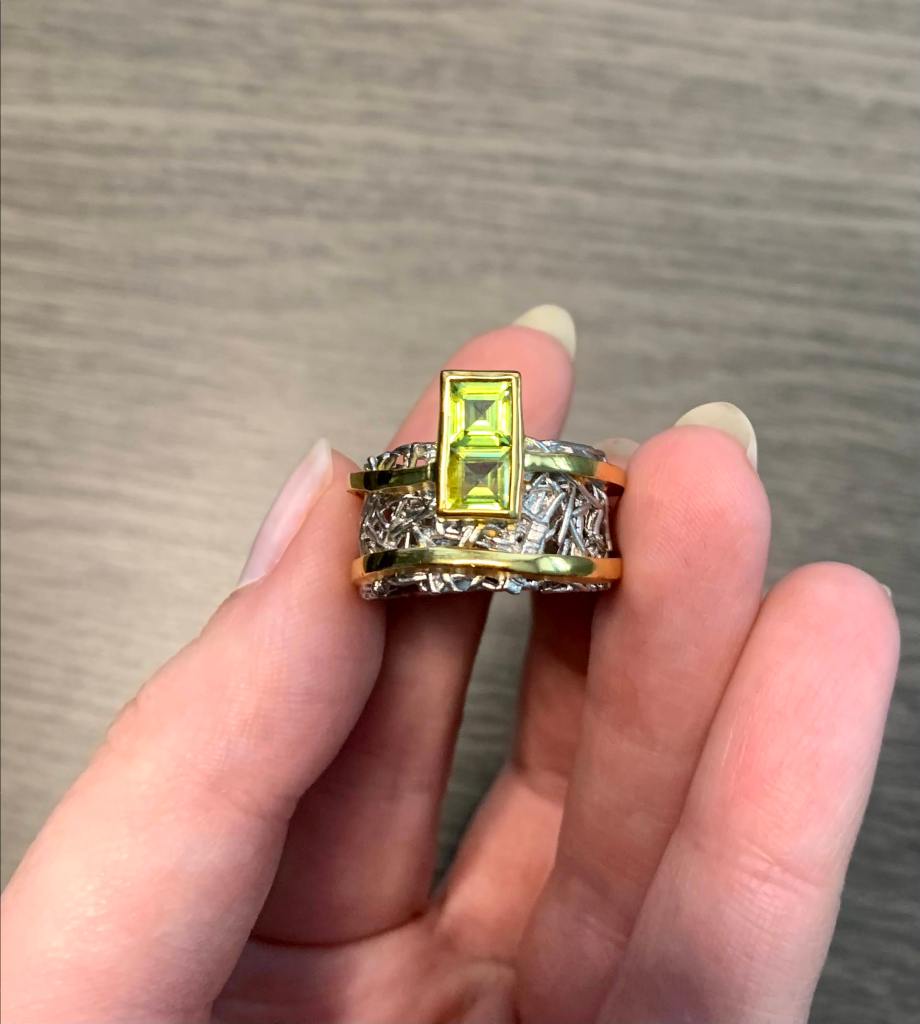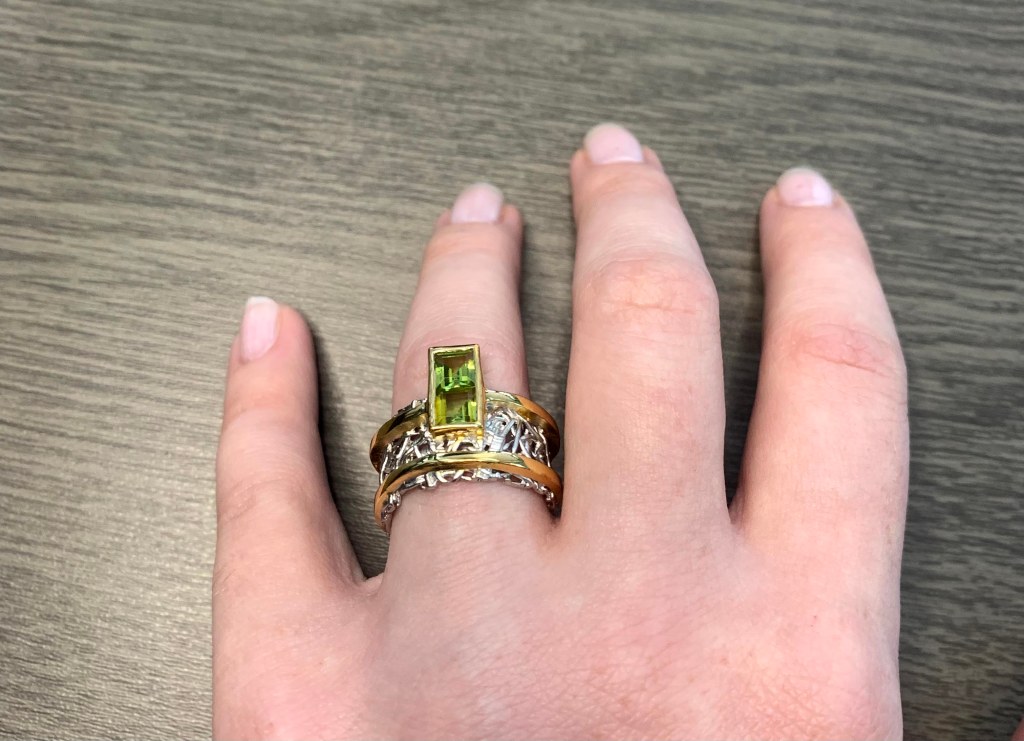 - Nitika Peridot Ring ($150) https://germankabirski.com/collections/all-products/products/k106038-nitika-peridot-ring