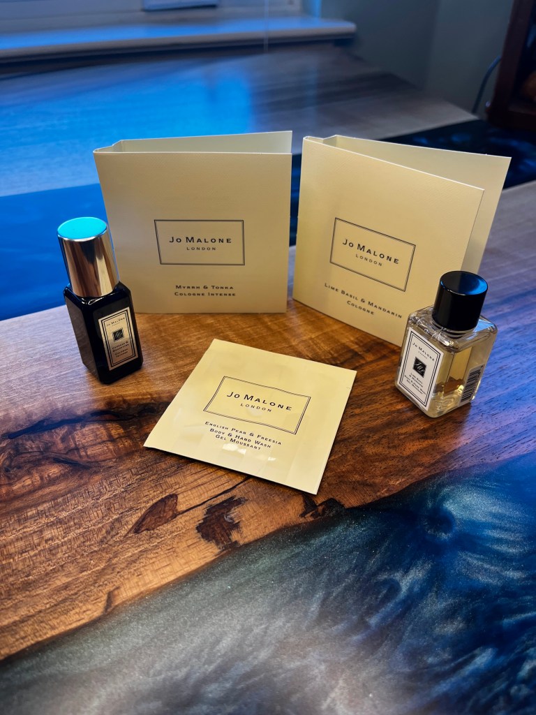 If you like free samples – please please please check out Jo Malone. There are standard samples they give away, but through the year they also give away extra free samples depending on the size of the purchase. In this case, I had to spend over $100 USD before taxes for an additional three samples in addition to the two cologne samples in the standard sample booklets.